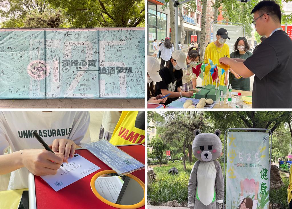 本次活动结合学校实际和学生特点,整合现有资源,共策划了共鸣留言板、人树屋心理测试、治愈明信片、解压包子铺、告白风车、“假人”击打玩具、“爱”的抱抱熊和“非牛顿流体”实验七项活动。