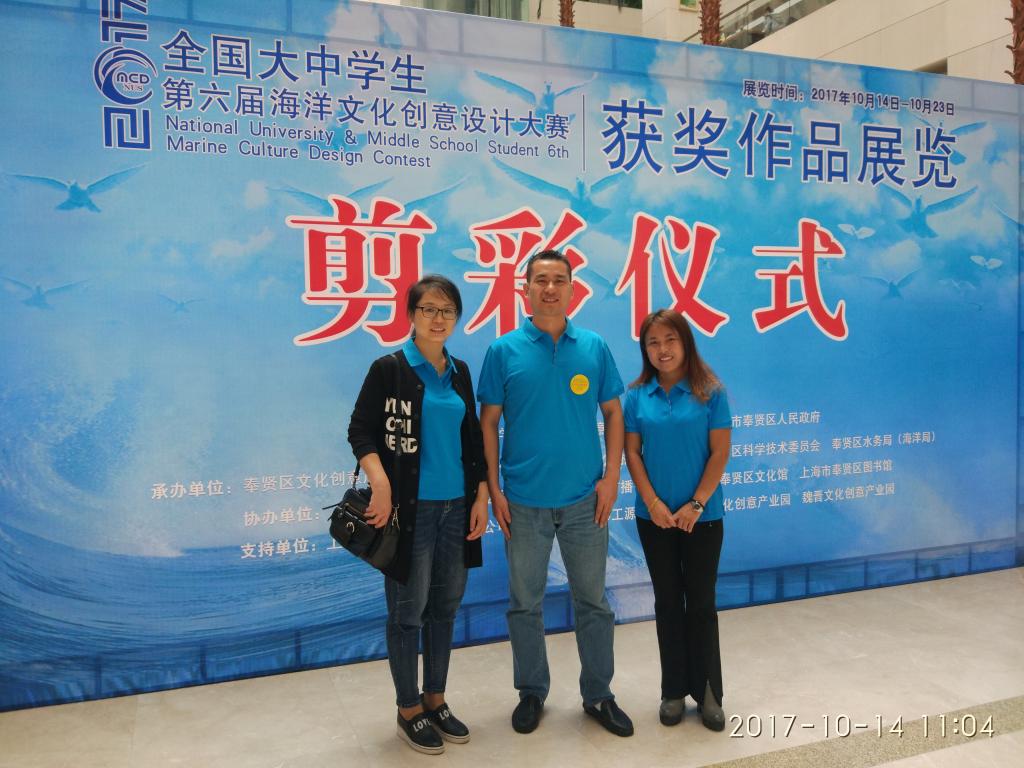 2017年10月14日全国大学生第六届海洋文化创意设计大赛获奖作品颁奖典礼暨获奖作品展在上海市奉贤区隆重开幕。我校传媒学院荣获此次大赛的优秀组织单位奖,并受邀参加大赛颁奖典礼暨2017“智慧海洋”大家谈暨创意设计论坛。