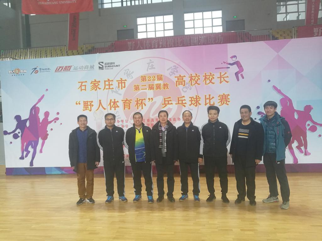 1月5日下午,由石家庄市高等学校体育协会主办,石家庄学院承办的石家庄市第22届暨第二届冀教高校校长乒乓球比赛在石家庄学院南校区大学生活动中心圆满落下帷幕。我校常务副校长张建敏,党委副书记副校长王志民,副校长甄心恒、甄墨组队参赛,与来自河北省教育厅以及驻石高校的校长、干部竞技。