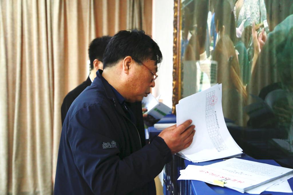 检查组查阅我校办学材料