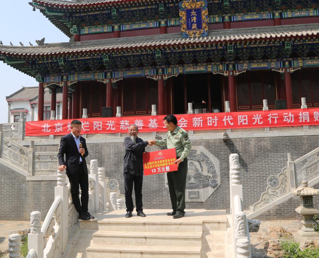 最后,李社长代表北京灿烂阳光慈善基金会向学校捐赠了图书,甄校长代表学校向基金会赠送了锦旗。