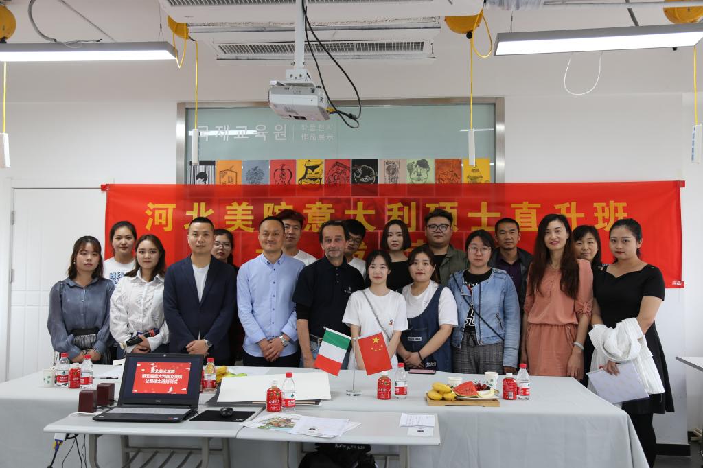 意方教授对申报公费赴意大利国立美术学院攻读硕士的学生进行了审核面试,此次选拔测试共有来自环境艺术学院、城市设计学院、服装学院、动画学院、雕塑学院的12名同学参加。面试期间,Paolo教授仔细聆听同学们对自己作品的解读及未来学业的规划,并择优进行点评,Paolo教授表示我校学生学习态度认真,对我校的教学成果表示认可,测试结束后,Paolo教授亲切的和同学们合影留念。