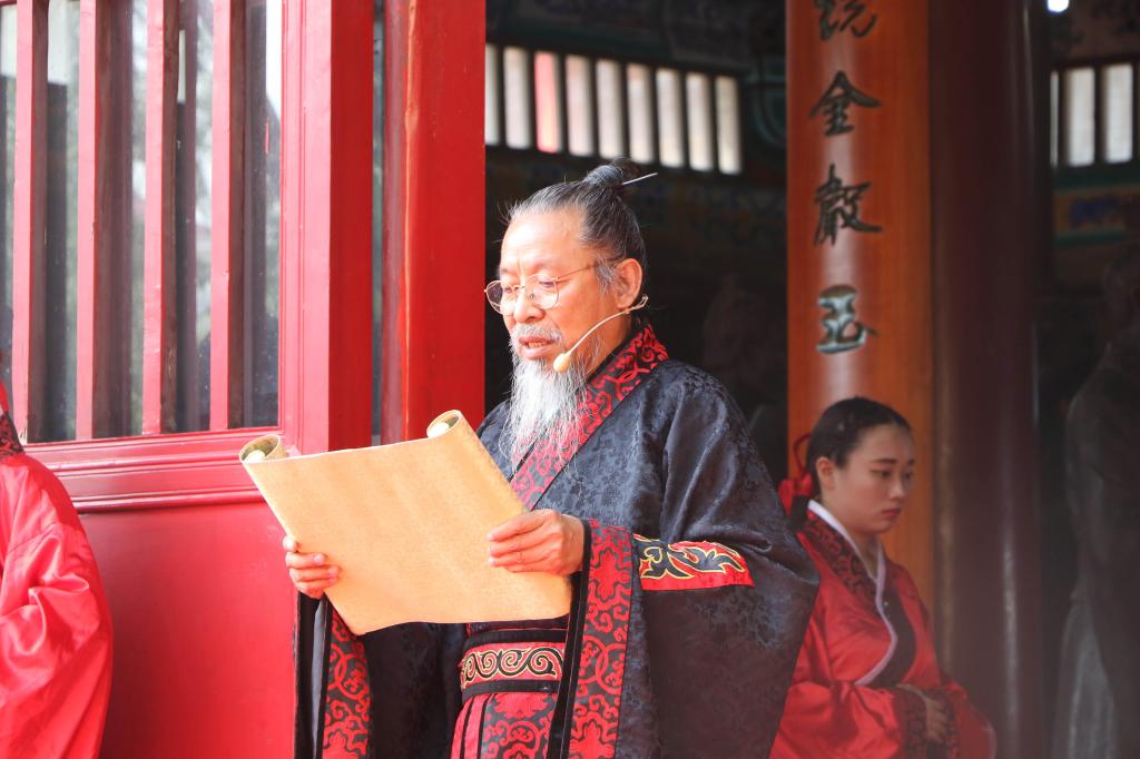 伴随礼赞高呼“吉时到,启户”,大成殿门开,贡献四牲。主祭人甄忠义校长,敬香行礼,敬献帛爵,宣读祭文敬告圣人。他表示,当世中华,富民强国;中国梦倡,育人为根。河美特色兴教,精心育魂,愿学子昂扬挺进,创领新途,共建美丽中国。陪祭人张建敏、张子言、甄心恒、甄墨、孙志强依次行亚献礼。众学子高声齐诵《孔子赞》,行三拜之礼,感恩家长、导师及学校培养。