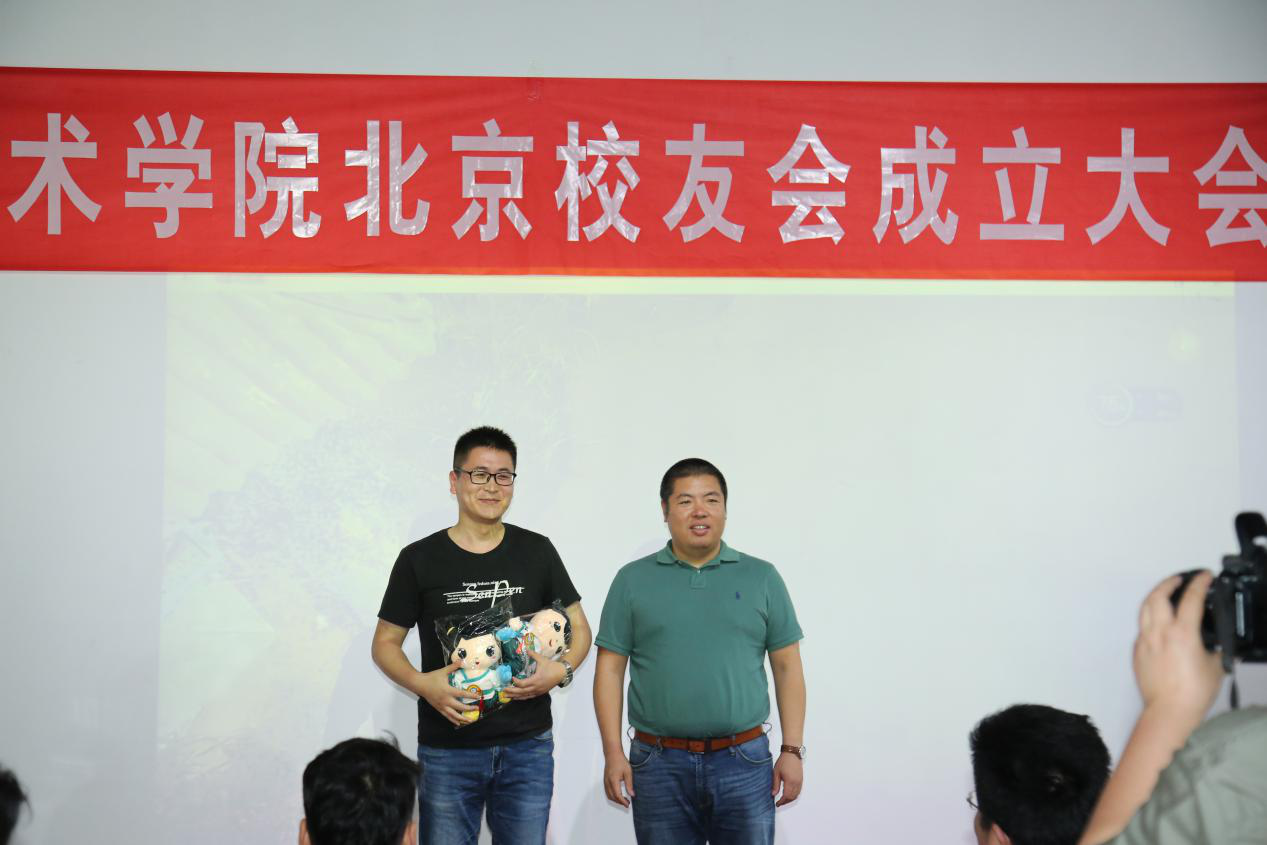 校长甄忠义为北京校友会授会牌、会旗,常务副校长张建敏为北京校友会赠送母校吉祥物“河河美美”,并为首届理事会成员颁发聘书。