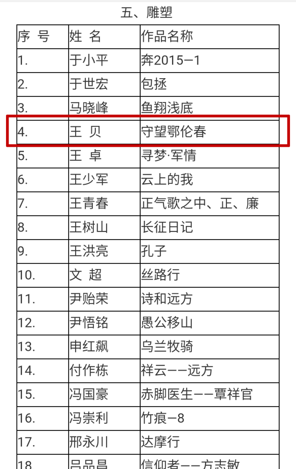 第十二届中国艺术节全国优秀美术作品展览参展雕塑作品名单