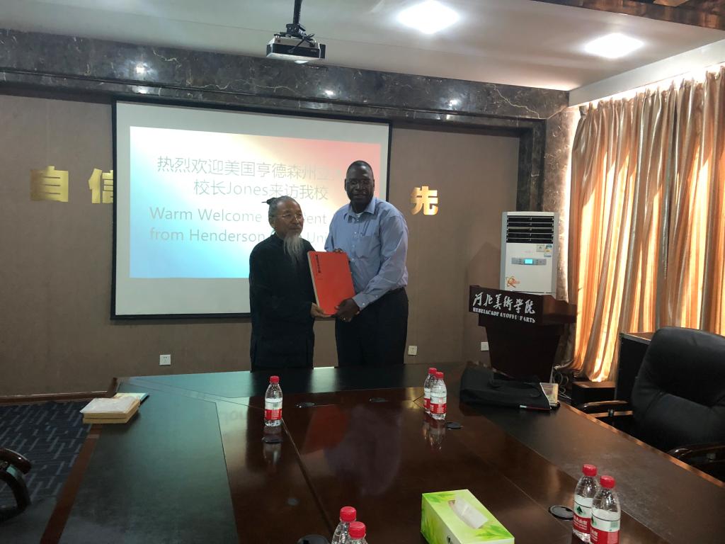 2019年5月23日上午10时,美国亨德森州立大学校长Jones一行来访我校,校长甄忠义,国际交流与合作中心主任、国际教育学院院长兰新成陪同接待了来宾。