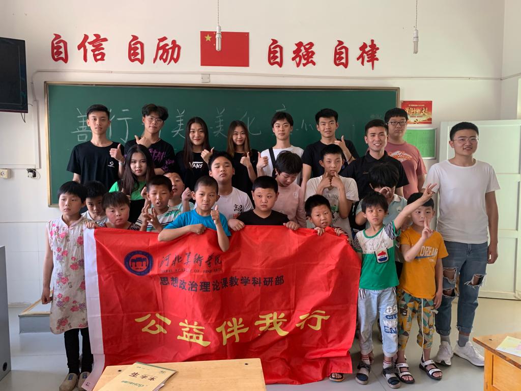 受援助的小学一般美术教育师资较为匮乏,经济状况相对落后,河美学子持续支教多年。这些学校的孩子们有很多是第一次面对面看大学生表演才艺,体会到了青春的美、健康的美,同时感受着当代大学生的风采;第一次收到书画作品,孩子们体会到了图画的美、文字的美,这都为他们日后自身的发展起到了积极地引导作用。在书法、绘画公益课以及与孩子们互动中,美院学子们感受美术教育的重要性和自身作为美术教育传承后备军的责任感。