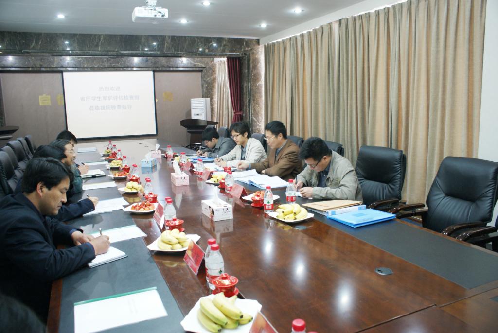 汇报会后,检查组检阅了我院学生军训工作的文件材料,实地考察了军事教研室,召开了学生代表座谈会。