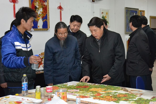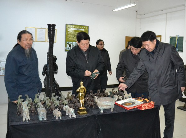 张彦欣政委在甄忠义校长的陪同下,先后参观了我校规划沙盘、各产业工作室、陶瓷研究所及美术博物馆等。