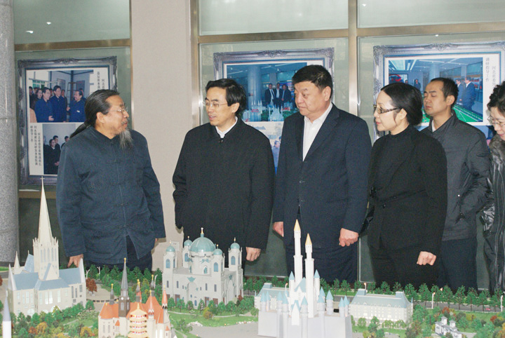 在甄忠义校长的陪同下,程凯副市长一行参观了我校规划沙盘和各产业工作室。在认真听取了甄校长的相关介绍后,程凯副市长对我校近年来所取得的成绩给予了高度的评价和充分的肯定,并就学校发展提出建设性意见。