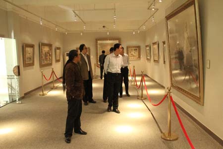 来到美术博物馆,宋德民副司长认真欣赏美术博物馆里的馆藏文物,并不时与甄校长交流,对我校的馆藏作品连连称赞。