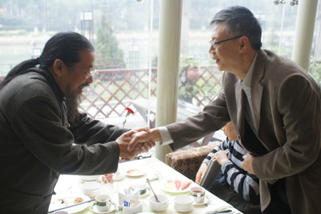 校长甄忠义与北京大学道家研究中心主任陈鼓应教授进行交流