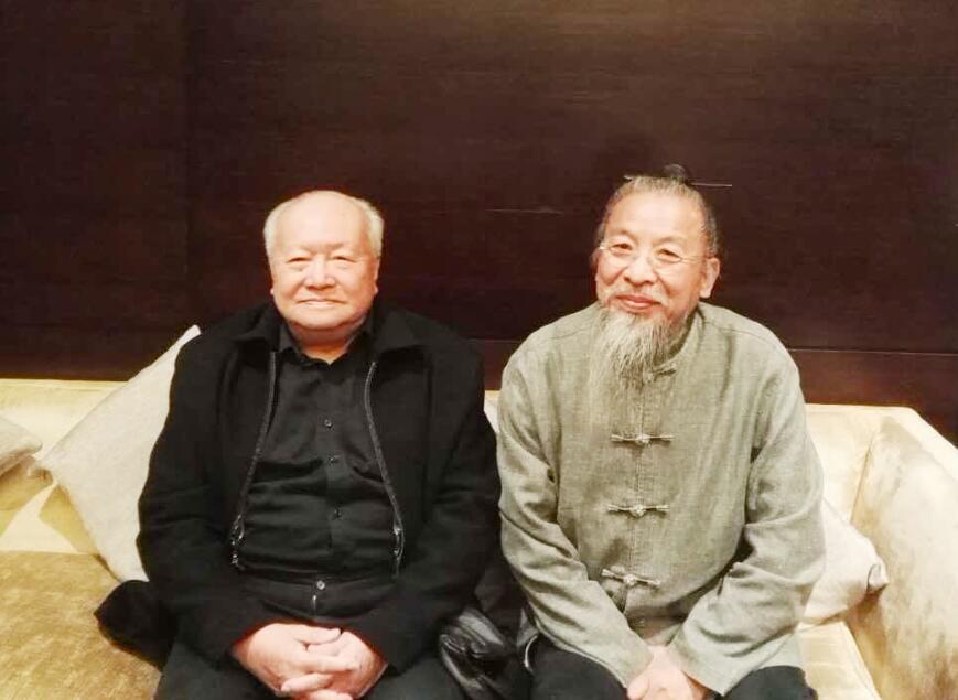 著名雕塑家、中央美术学院钱绍武教授(左)和国产精品爽爽久久久久久竹菊-精品少妇人妻一区二区-国产乱人妻精品一区二区-香蕉精品偷在线观看-少妇一夜三次一区二区校长甄忠义(右)合影