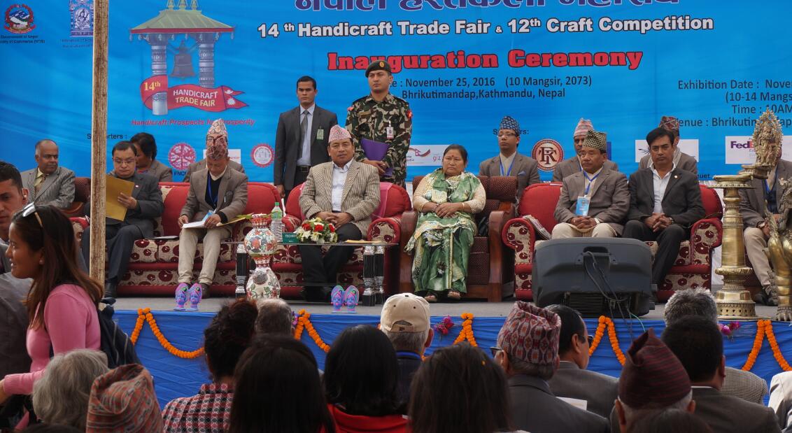 11月25日“手工艺品交易会暨专项技艺大赛”盛大开幕,尼泊尔副总统南德·巴哈杜尔·普恩、商务部、手工艺协会等各界领导参会。甄校长一行出席开幕式,参观了木雕、锻铜、唐卡、铸铜、纺织布艺、旅游产品、茶叶等数十类手工艺产品和特色产品,并与参展单位交流尼泊尔手工艺术。