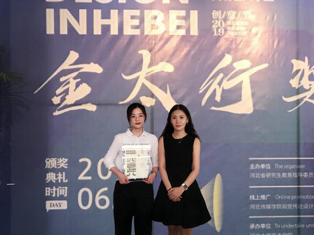 2019年6月17日,第三届河北省大学生创意节暨2019河北省高校毕业设计“金太行奖”颁奖典礼在河北大学隆重举行。受组委会邀请,我校传媒学院视觉传达专业教师杨彤彤带领获奖学生参加此次颁奖活动。此次大赛组委会秉承“宁缺毋滥,优中选优”的原则,经过激烈的角逐,我校三名同学在千余套毕业设计中脱颖而出,入围“金太行奖”,视觉传达专业李木子同学获得“佳作奖”。