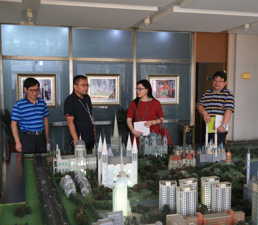 交流结束后,湖北师范大学继续教育学院一行实地考察了规划沙盘、雕塑学院、鸡鸣古城、帝国广场、老庄文化研究中心展厅等校园环境。考察期间,石教磊书记对我校近年来所取得的成绩给予了高度的赞赏。