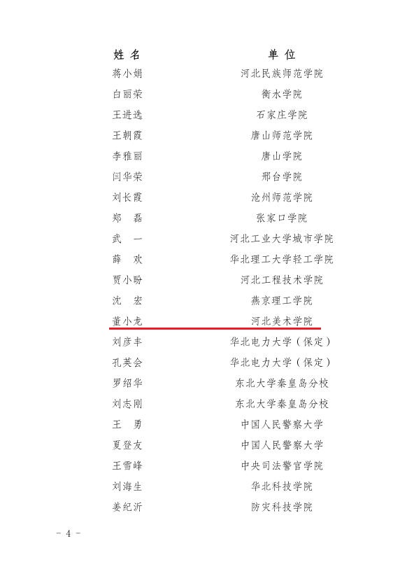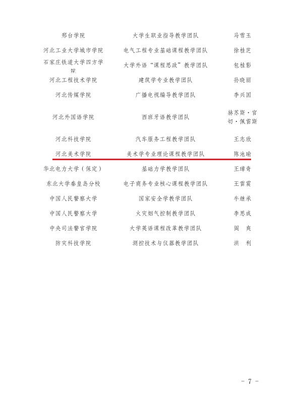 近日,河北省教育厅下发《河北省教育厅关于公布2019 年河北省普通本科院校教学名师和优秀教学团队名单的通知》(冀教高函〔2019〕44 号)。2019年河北省普通本科院校共评出优秀教学团队56个、教学名师63名。我校美术学专业理论课程教学团队获评为河北省普通本科院校优秀教学团队,董小龙副教授荣获2019年河北省教学名师荣誉称号。