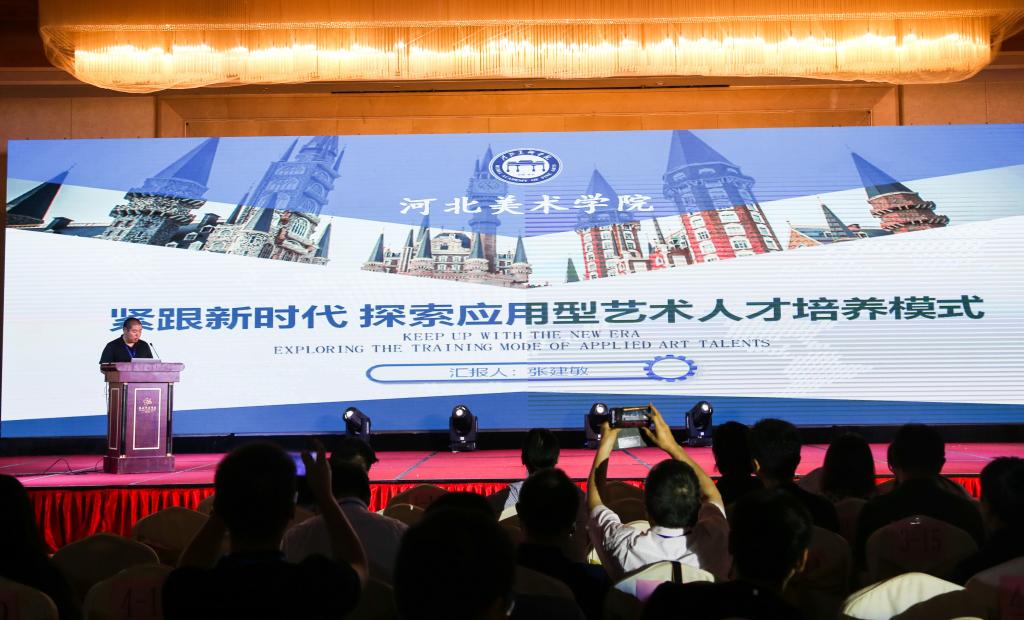 我校常务副校长张建敏教授作为七位发言专家之一,以“紧跟新时代 探索应用型艺术人才培养模式”为题,从“围绕应用型艺术人才,打造精准化培养体系”“发挥艺术集群优势,创新工作室教学模式”“紧跟新时代,培育高雅审美情趣”“加强文化浸润,形成独特艺术优势”等方面与参会人员进行深入探讨与经验交流。