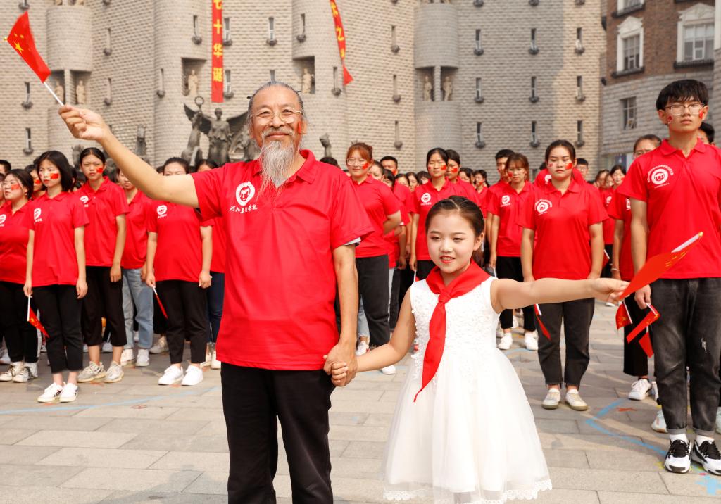 “歌唱我们亲爱的祖国,从今走向繁荣富强”在历史和未来的交汇点,凝聚河美青春力量。70名旗手挥动五星红旗,2019名师生共同组成中国地图,激情燃唱《歌唱祖国》,用悠扬歌声,传递美好祝福,用满腔热忱,唱响青春旋律,献礼祖国母亲。