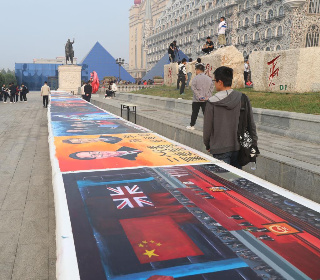 70米画卷绘祖国,共“话”祖国繁荣盛世。《盛世中国》巨幅画卷以新中国成立后重大历史事件为创作思路,回顾新中国成立、改革开放、中国梦、一带一路、习近平新时代中国特色社会主义思想等足迹,通过师生共绘的形式将爱国火种播进一代代年轻人心中,打好立德树人鲜亮底色,汇聚同心共筑中国梦的磅礴伟力。