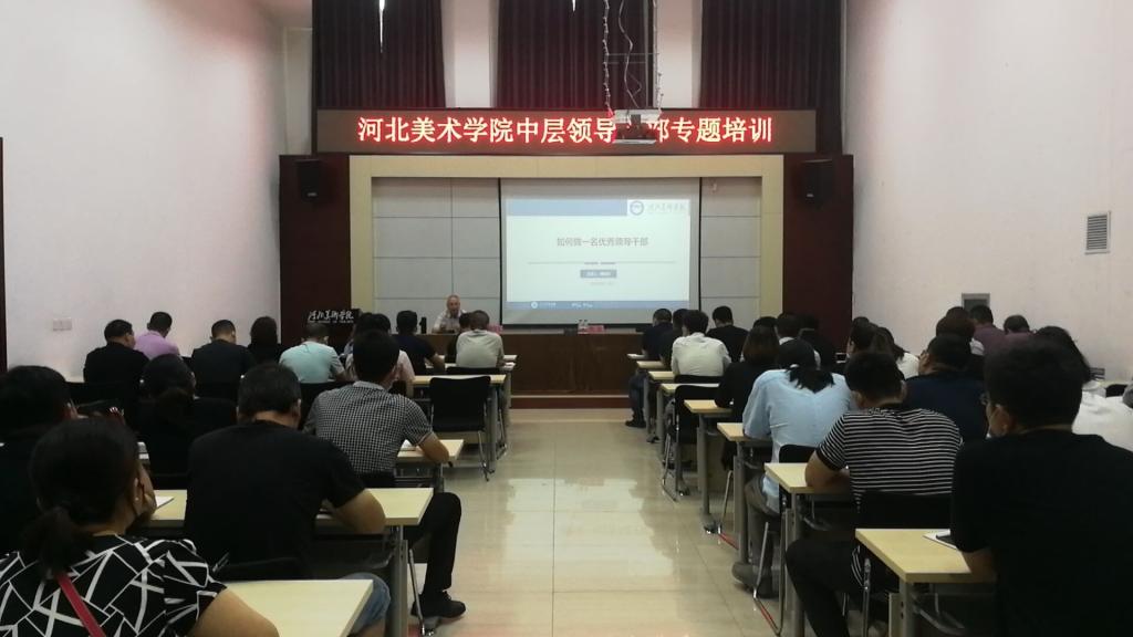 为进一步适应学校综合改革要求,提升中层领导干部的思想政治素质和履职尽责能力,推动学校战略性事业又好又快发展,2020年8月17日上午我校在北高五报告厅举办“中层领导干部专题培训(第一期)”。特别邀请河北省人力资源和社会保障厅原副巡视员傅国丰作“如何做一名优秀领导干部”的主题报告。校长助理、人事处处长麻立峰主持,全校副处级及以上的中层领导干部参加了培训学习。