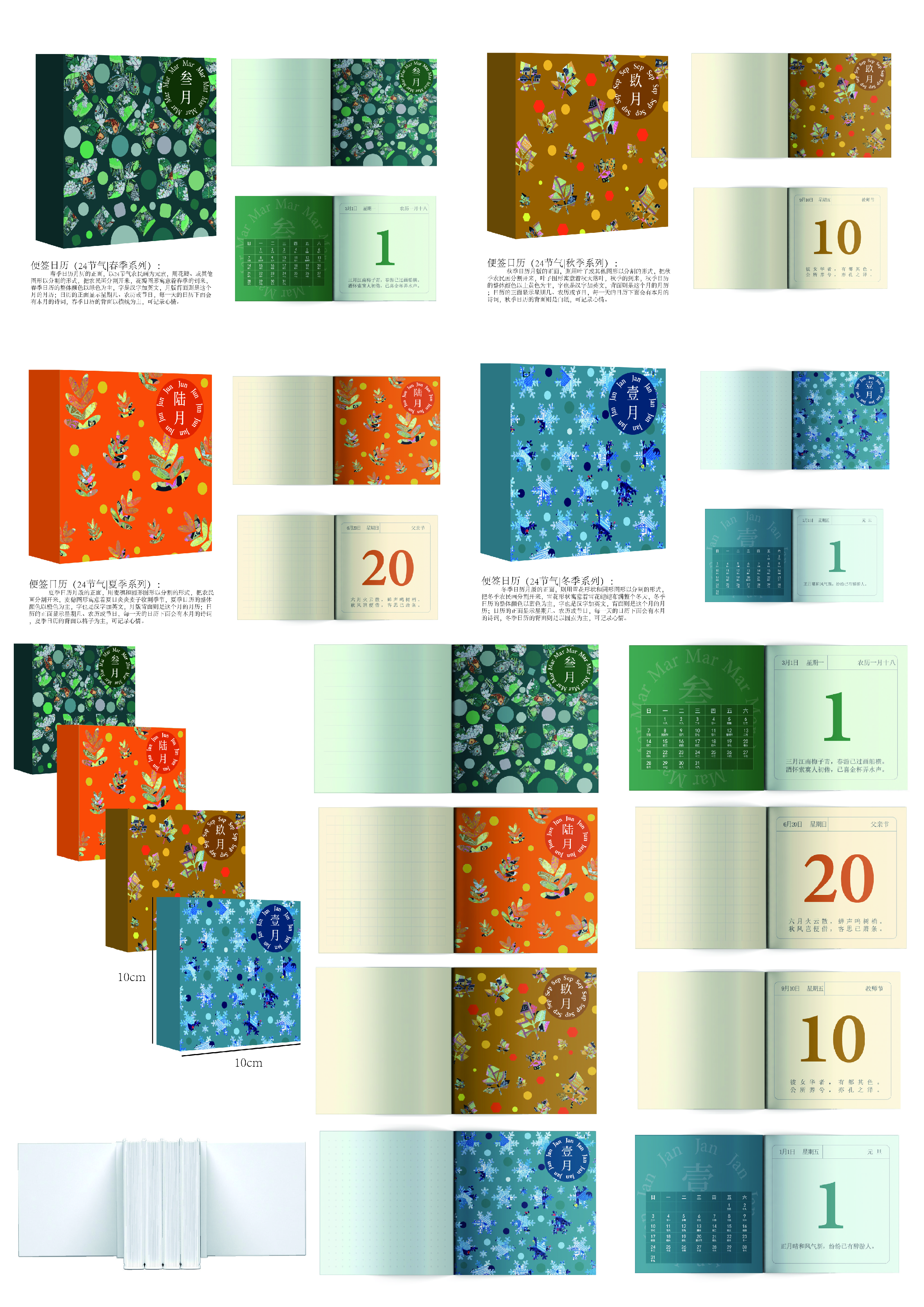 171201班王亚翠同学创作的《四季日历月版》系列在文创衍生类中获得三等优秀奖,指导教师:王超义