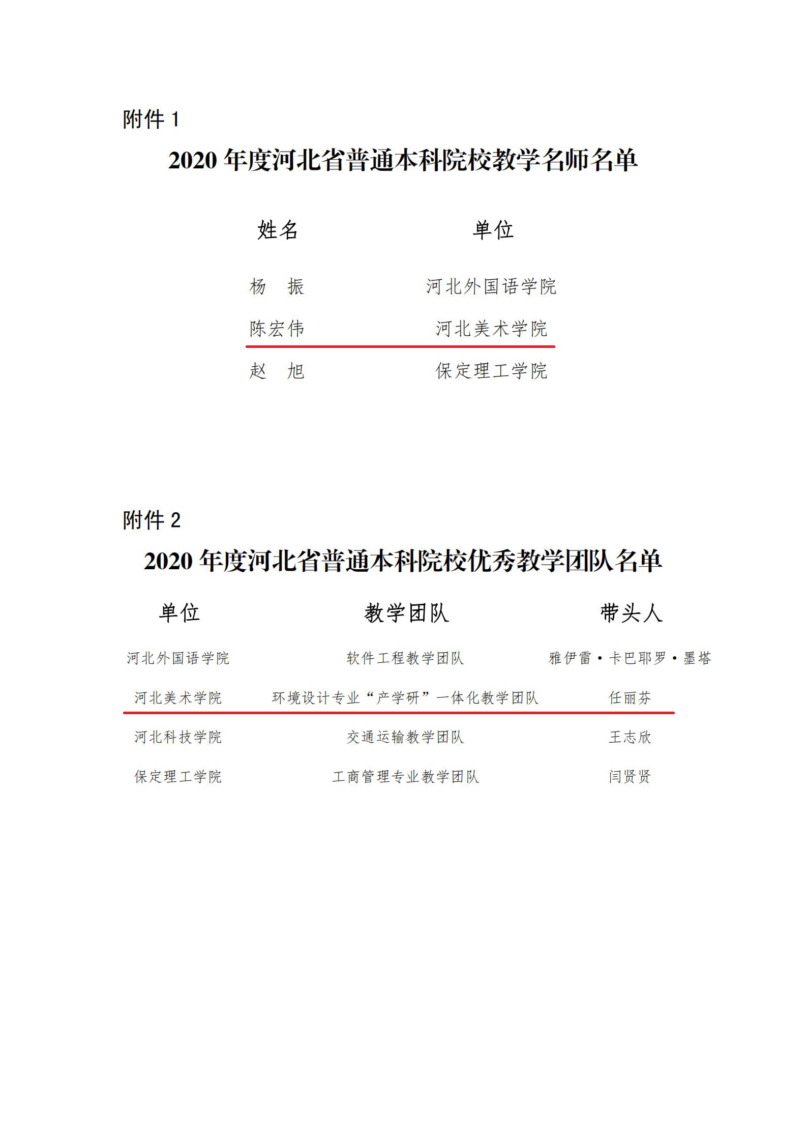 日前,河北省教育厅下发了《关于公布2020年度河北省普通本科院校教学名师和优秀教学团队名单的通知》(冀教高函〔2020〕63号),我校国际教育学院陈宏伟教授获得省级教学名师奖,环境艺术学院任丽芬教授带领的“双创背景下环境设计专业‘产学研’一体化教学团队”获批2020年省级优秀教学团队。
