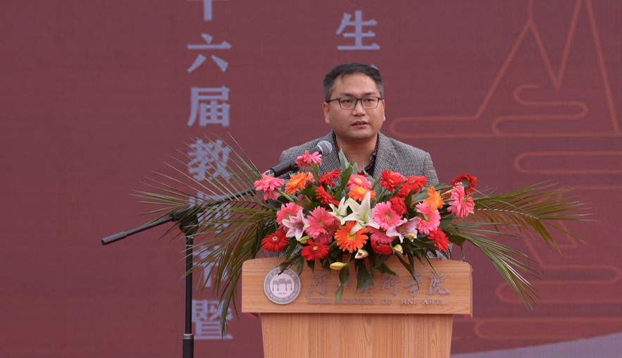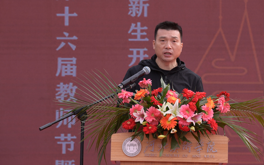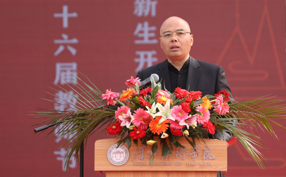 典礼上,造型艺术学院张显果老师、影视艺术学院李一同学、来自坦桑尼亚的马修同学分别代表教师、在校生和留学生寄语新生,勉励他们要严格要求自己,刻苦学习,珍惜当下,勿虚度时光。产品设计学院田一鸣同学代表新生发言,表达了对校园环境的震撼,号召全体新生勇敢追求真知和梦想。