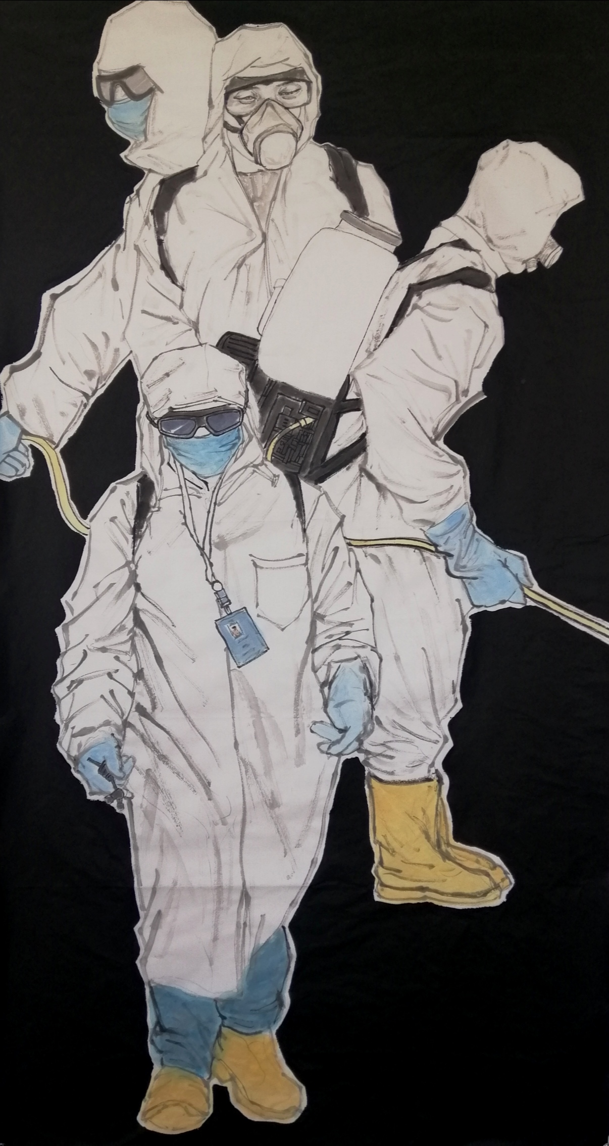 《抗疫之行》作者宋雅菲 尺寸180cmx96cm 指导老师 张显果