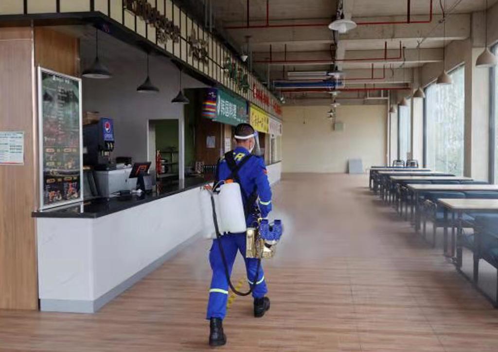 蓝天救援队是专业救援公益机构,疫情期间为省会及新乐的防疫工作做出了突出贡献,受到了各级领导、广大群众的称赞。此次对我校进行的消杀工作由石家庄蓝天救援队及辛集蓝天救援队联合开展,近20位专业队员肩负消杀设备对我校行政办公楼、教学楼、学生公寓、图书馆、餐厅、家属院等公共场所逐一实施消毒防疫,重点对楼道、洗手间、垃圾桶等关键区域、关键点实施密集消毒。各位队员认真严谨,采用地毯式行进消杀,不留防控死角,达到了有效防疫的目的,为师生返校营造了安全、卫生的校园环境。