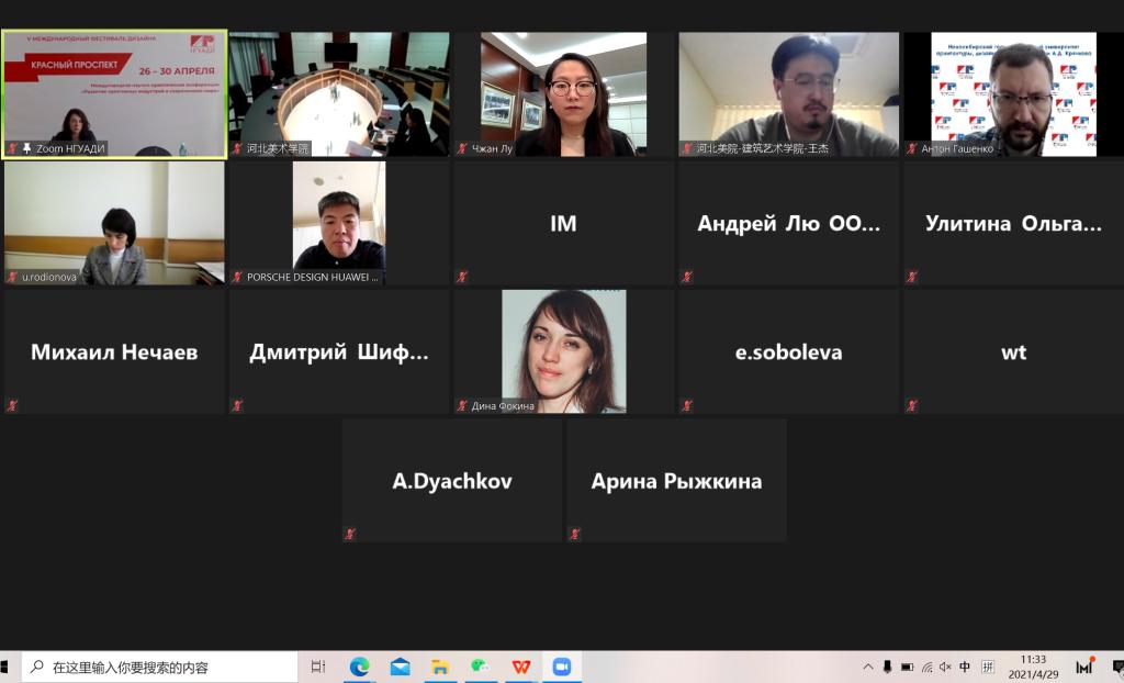Рязанцева Инна Вячеславовна首先作了《中俄在艺术领域的合作》主题报告。甄忠义发表讲话,对近期由新西伯利亚国立建筑艺术大学举办的第五届“红色大街”国际艺术节表示祝贺。他指出,我校师生积极踊跃参加此次国际设计节,提交了一百多件参赛作品。张建敏在发言中表示,希望与世界优秀的艺术类大学建立硕士联合培养、师生交流等多方面的深入合作。我校教师代表张露、外教代表斯维达分别在会上发表了《为艺术类高校学生建立文化艺术交流基地的必要性》《中国美术和设计专业本科生的一些影射分析》报告。