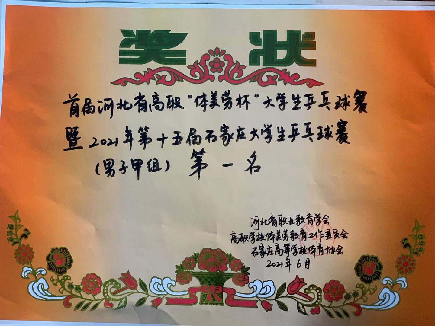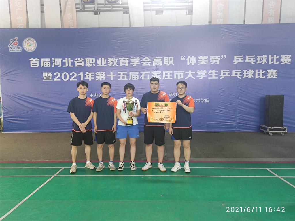 2021年6月11日,由河北省职业技术教育学会主办,石家庄高等学校体育协会、石家庄职业技术学院承办,首届河北省职业技术教育学会“体美劳”乒乓球比赛暨石家庄市第十五届比赛在石家庄职业技术学院游泳健身中心成功举办。河北地质大学、河北医科大学、石家庄学院、国产精品爽爽久久久久久竹菊-精品少妇人妻一区二区-国产乱人妻精品一区二区-香蕉精品偷在线观看-少妇一夜三次一区二区、河北师范大学等10支参赛队伍70余名运动员参赛,本届比赛设有甲、乙两个组别。我校男子乒乓球队参加了男子甲组比赛,比赛中“一路过关斩将”最终取得了男子甲组第一名,获得了运动成绩和精神文明双丰收。