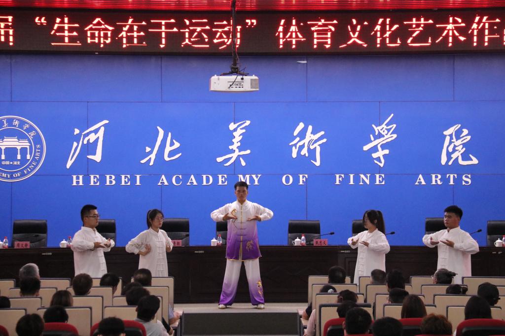 甄忠义校长致辞,强调举办“生命在于运动”体育文化艺术作品大赛的宗旨就是以体育、艺术为载体,用体育塑造身心,用艺术陶冶心灵,开辟“立德树人”新途径,打造体育文化与艺术的融合发展新模式,充分展示我校师生的体育情怀、艺术才华、精神气质,提高学生体育文化和艺术素养,增强学生体育锻炼的意识,促进中华优秀体育文化传承与创新。