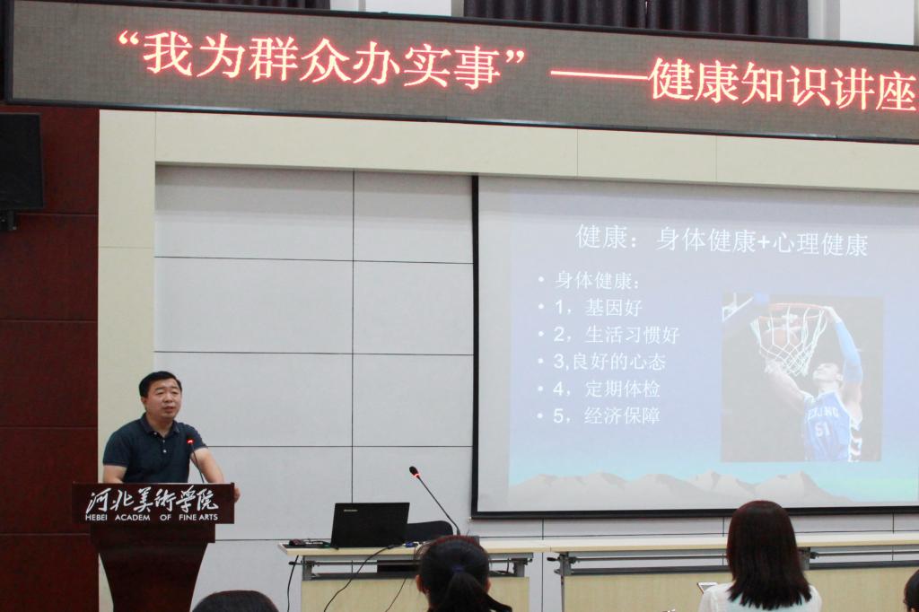为深入开展党史学习教育“我为群众办实事”实践活动,进一步提高教职工的健康知识水平,我校工会特别邀请新乐市中医院外三科主任李建强作健康知识讲座。校党委副书记副校长甄心恒、动画数字艺术学院和影视艺术学院全体教师参加讲座。本次讲座由党委组织部部长郭珊主持。