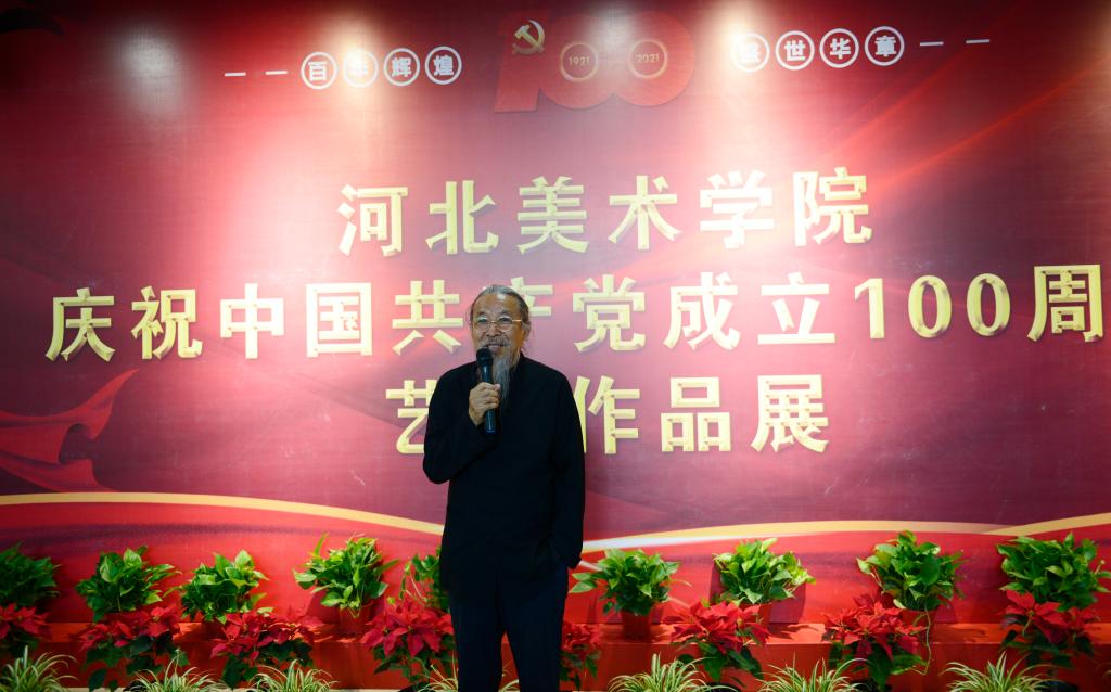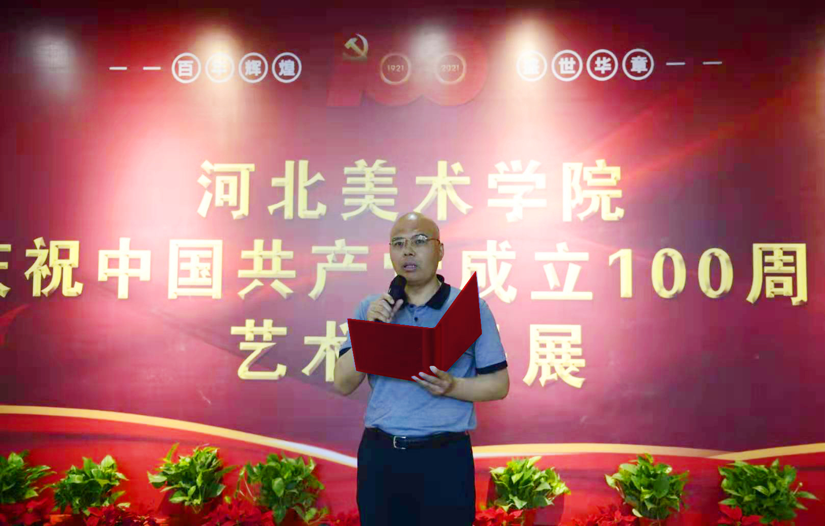 开幕式上,校党委书记高国忠致辞。他表示,这次活动是我校向党百年华诞的献礼,是党史学习教育的一项重大活动,也是学校各二级学院课程思政的实践成果展。参展作品主题突出,具有鲜明的红色基因,凝聚着广大师生对党的深厚感情和对红色文化的深刻领悟。希望全校师生以此次展览为契机,传承红色基因,讴歌党的百年辉煌,为学校早日跻身于全国一流美术院校而努力奋斗。