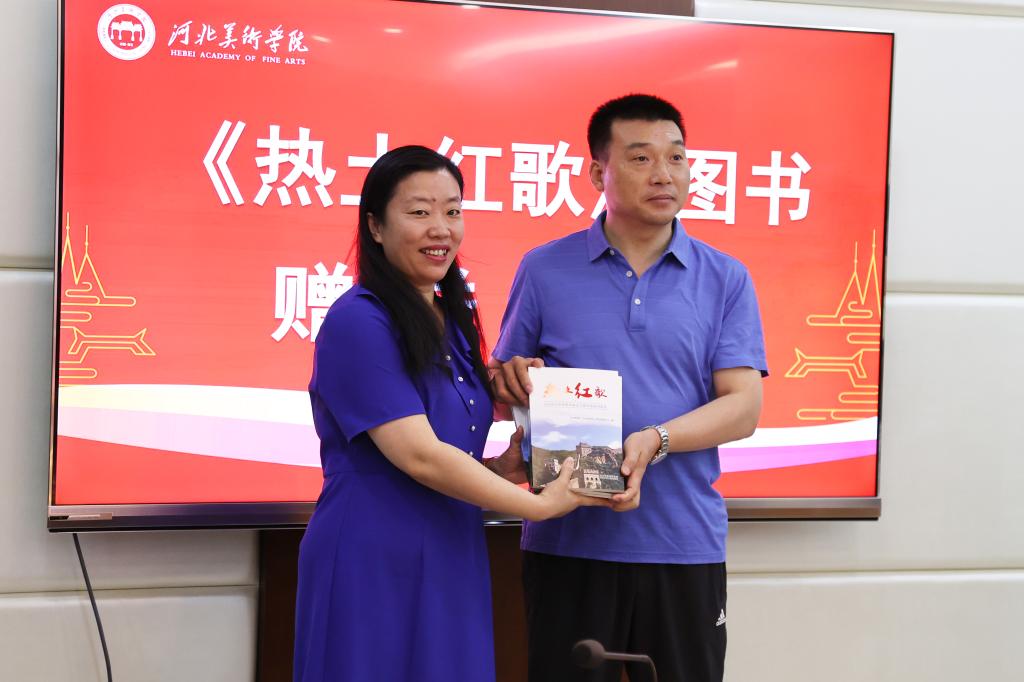 6月23日上午,河北博物院党委委员、副院长徐艳红,党办主任杨昊,教育部主任刘卫华来我校赠送图书《热土红歌》。校领导甄忠义、高国忠、张子言、甄心恒、麻立峰以及相关部门领导、师生代表参加了赠送仪式。仪式由党政办公室主任周哲主持。