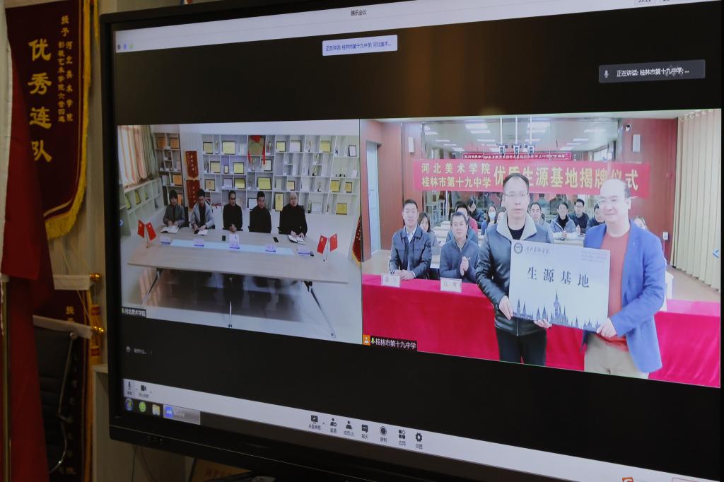 党委副书记、副校长甄心恒介绍了我校基本概况,对桂林市第十九中学取得的优异成绩表示祝贺。他表示,桂林市第十九中学办学历史悠久,发展迅速,坚持特色办学、特色教育,取得了瞩目的成绩,为社会培养了大批优秀艺术人才。近年来,桂林市第十九中学为我校输送了大量优质生源,结下了深厚的友谊,希望今后两校进一步加强交流与合作,携手并肩,共同为推进我国教育事业快速发展贡献力量。
