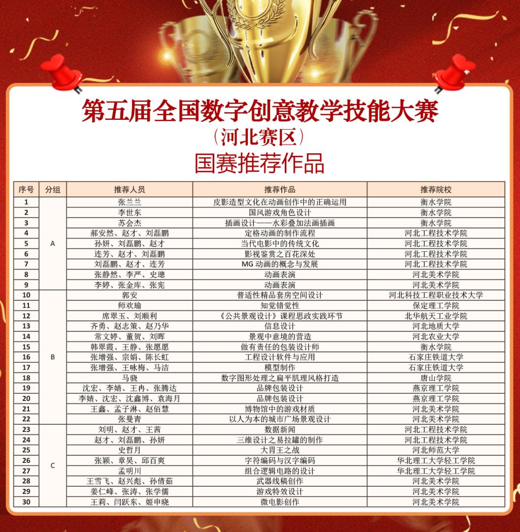 4月29日,由我校动画数字艺术学院承办的第五届全国数字创意教学技能大赛(河北赛区)评审工作正式结束,标志着大赛相关工作圆满完成。