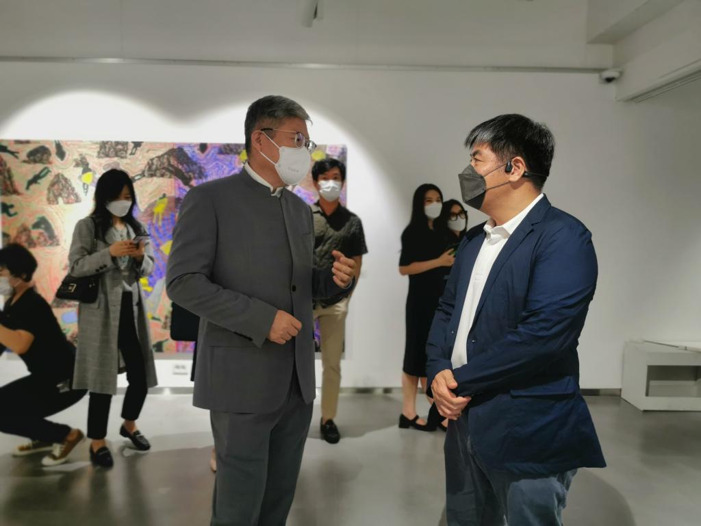 2022韩中建交30周年纪念展“纽带与同行”于7月7日在韩国隐岩美术馆开幕,我国驻光州总领事馆总领事张承刚、光州市国际关系大使尹汝哲、东区区长林泽、光州隠岩美术馆馆长蔡钟基和当地文化艺术界代表出席,我校校长甄忠义、常务副校长张建敏等30余名中韩参展艺术家通过线上、线下方式参加。甄校长《奔向希望》等8幅作品,张校长《桃花印象1》等2幅绘画作品展出。