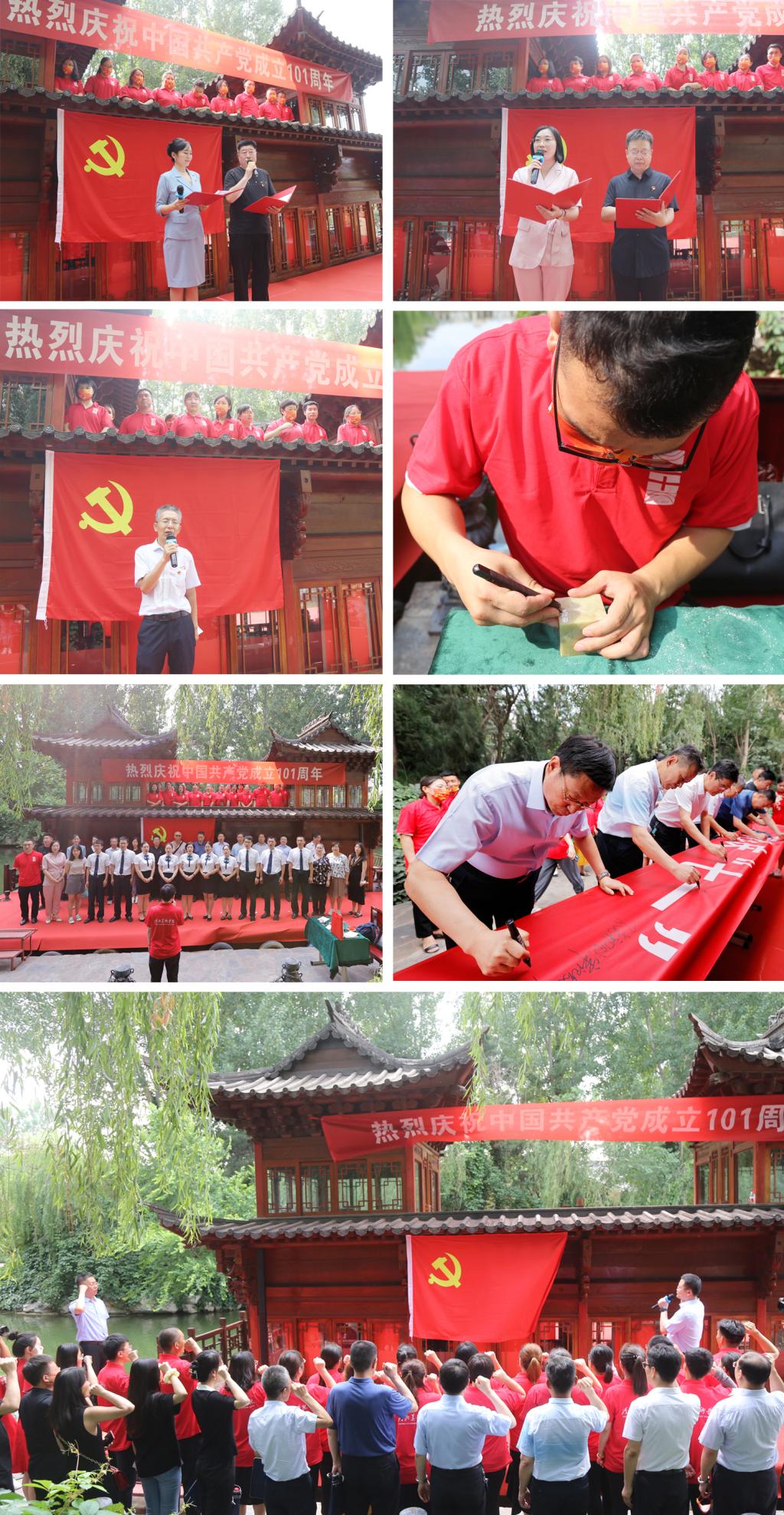 朗诵《红船颂》,充满深情地礼赞了红船精神,讴歌了共产党人百折不挠的意志;同唱《没有共产党就没有新中国》,唤起大家爱党爱国爱社会主义的深厚情感,唱出党的光辉历程与灿烂明天;聆听《从英烈故事中感悟红船精神》的讲述,从英烈身上汲取前进力量,增强自身的使命感和责任感;方寸红印颂党恩,通过篆刻这种古老而新颖的艺术形式,展示出对祖国母亲的无限深情;重温入党誓词,铿锵的誓词久久回荡,表达出中共党员为共产主义事业奋斗终身的信心和决心;在红色条幅上,同写对党的祝福,抒发了对祖国无比崇敬和热爱之情。
