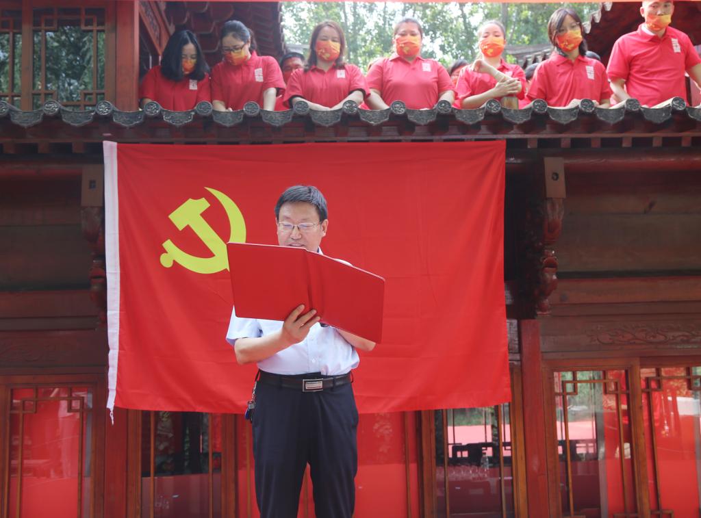 6月30日,我校与河北省社会科学院、河北省演讲与口才学研究会、新乐市农村信用合作联社等单位联合举办以“同心庆七一 喜迎二十大”为主题的“七个一”系列联学共建活动。通过读一首红诗、唱一首红歌、讲一个红色故事、刻一方红印、讲一次党课、重温一次入党誓词、写一句祝福语,庆祝建党101周年。