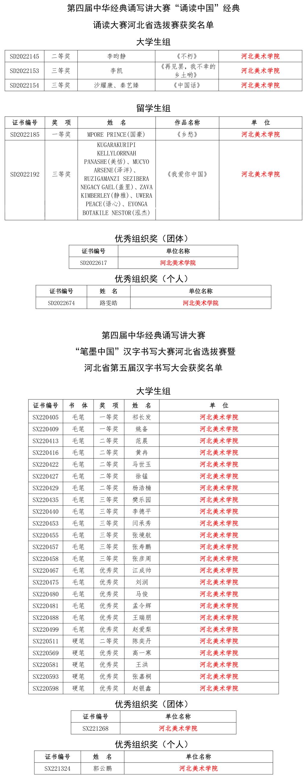 中华经典诵写讲大赛是由教育部、国家语委主办,教育部语言文字应用管理司负责实施的公益性、全国性赛事活动,包括一系列比赛。今年我校在“诵读中国”经典诵读大赛河北省选拔赛和“笔墨中国”汉字书写大赛河北省选拔赛中成绩突出,获得了多个奖项。