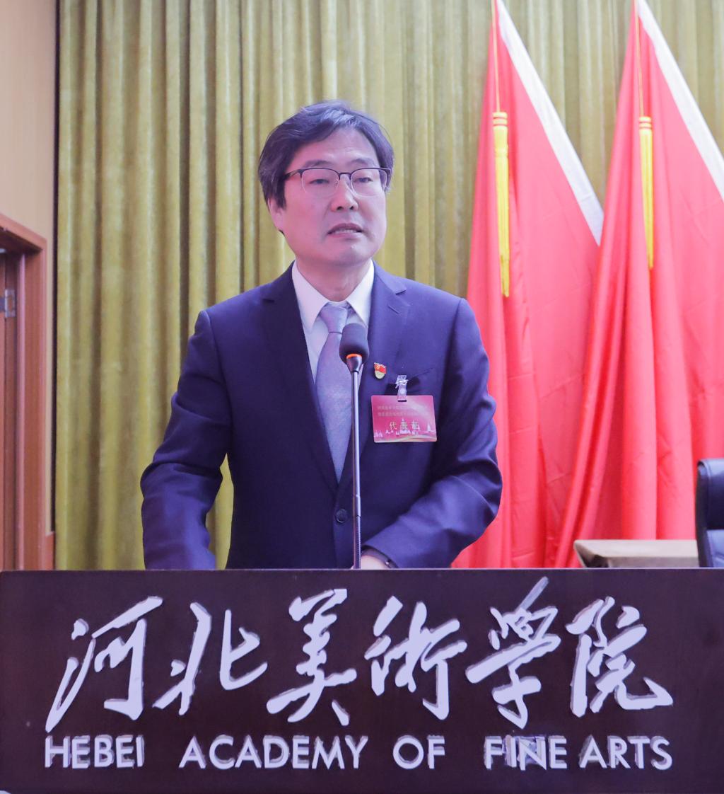 上午9时,大会在雄壮的国歌声中开幕。学校举办者、校长甄忠义以《赓续奋斗 逐梦前行 奋力开启建设跻身全国一流美术院校新征程》为题作学校工作报告。报告全面系统地总结了2022年学校在疫情防控、党建工作、教育教学、学生管理、科研与学科建设、师资建设、招生就业、国际交流等方面取得的成绩,提出了2023年的工作任务。报告指出,2023年,是全面实施“十四五”规划的关键之年,是学校申硕的决胜之年。我们必须加强党对学校工作的全面领导,紧跟国家发展步伐,加快落实学校“广积粮、推围墙、要成王”的九字发展方针,实现“高水平教学科研团队、国家级重大项目立项、国家级奖项、国家级平台、硕士授予权”五大突破,开启建设跻身全国一流美术院校、争创世界一流美术院校新征程。