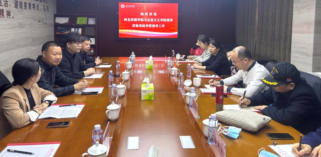 3月10日上午,河北传媒学院马克思主义学院院长梁晓、书记张彦兴一行10人到我校马克思主义学院考察交流。马克思主义学院执行院长梁泽光,直属党支部书记、副院长武笑笑及各教研室主任陪同考察。