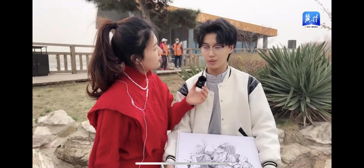 漫画教研室田晓露老师与河北经济生活频道主持人张玉进行访谈,分享我院学生优秀作品集,介绍学校的湿地。