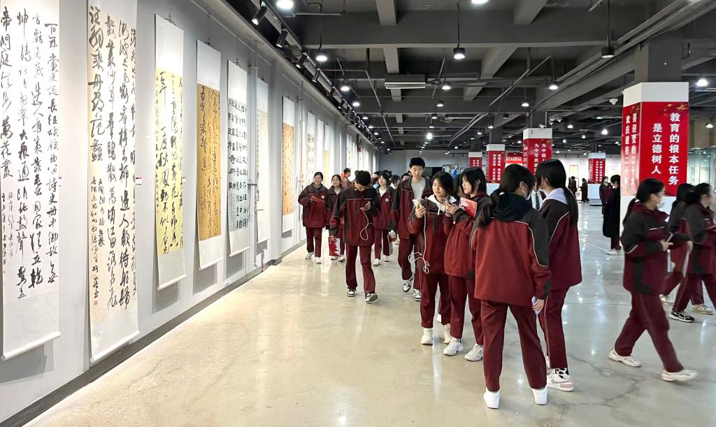 3月25日下午,石家庄市第十二中学师生来我校参观考察,先后参观了红色文化长廊、激越•自在-张玉生绘画艺术展。