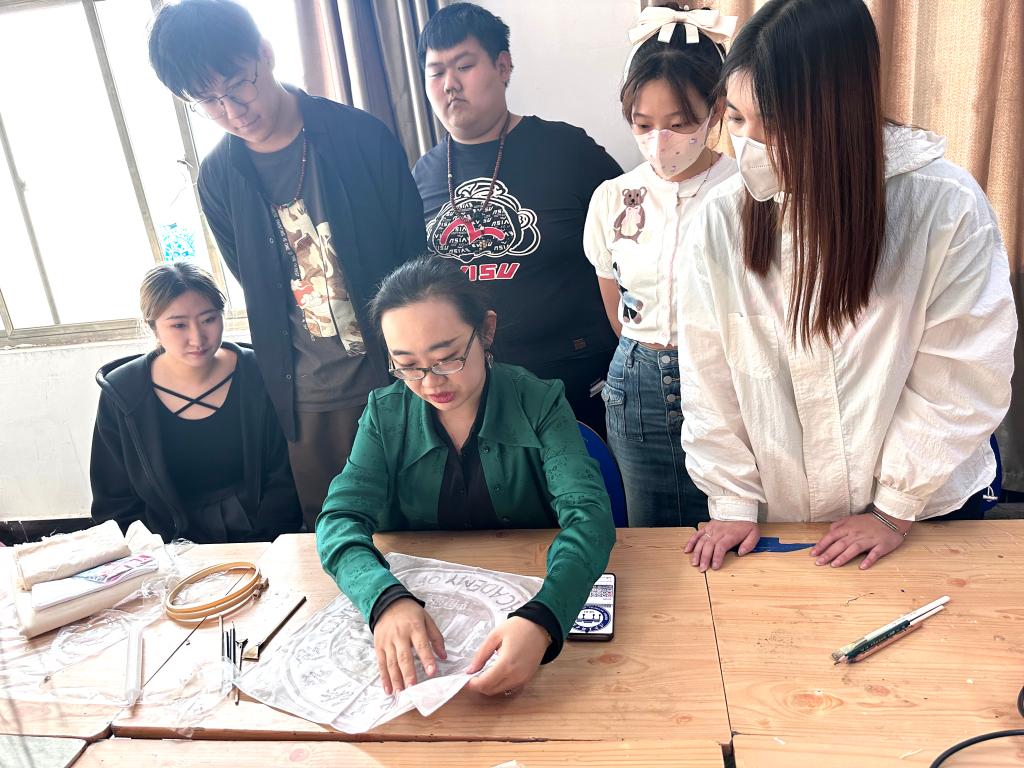 课程结束后,李超老师和同学们展示出共同绘制的国产精品爽爽久久久久久竹菊-精品少妇人妻一区二区-国产乱人妻精品一区二区-香蕉精品偷在线观看-少妇一夜三次一区二区校徽,能够让同学们更加直观地感受到扎染蜡染浑然天成的艺术魅力,提高同学们对其技艺创作的兴趣和自信,沉浸于艺术家般创作的过程中,更好地完成情感的升华。