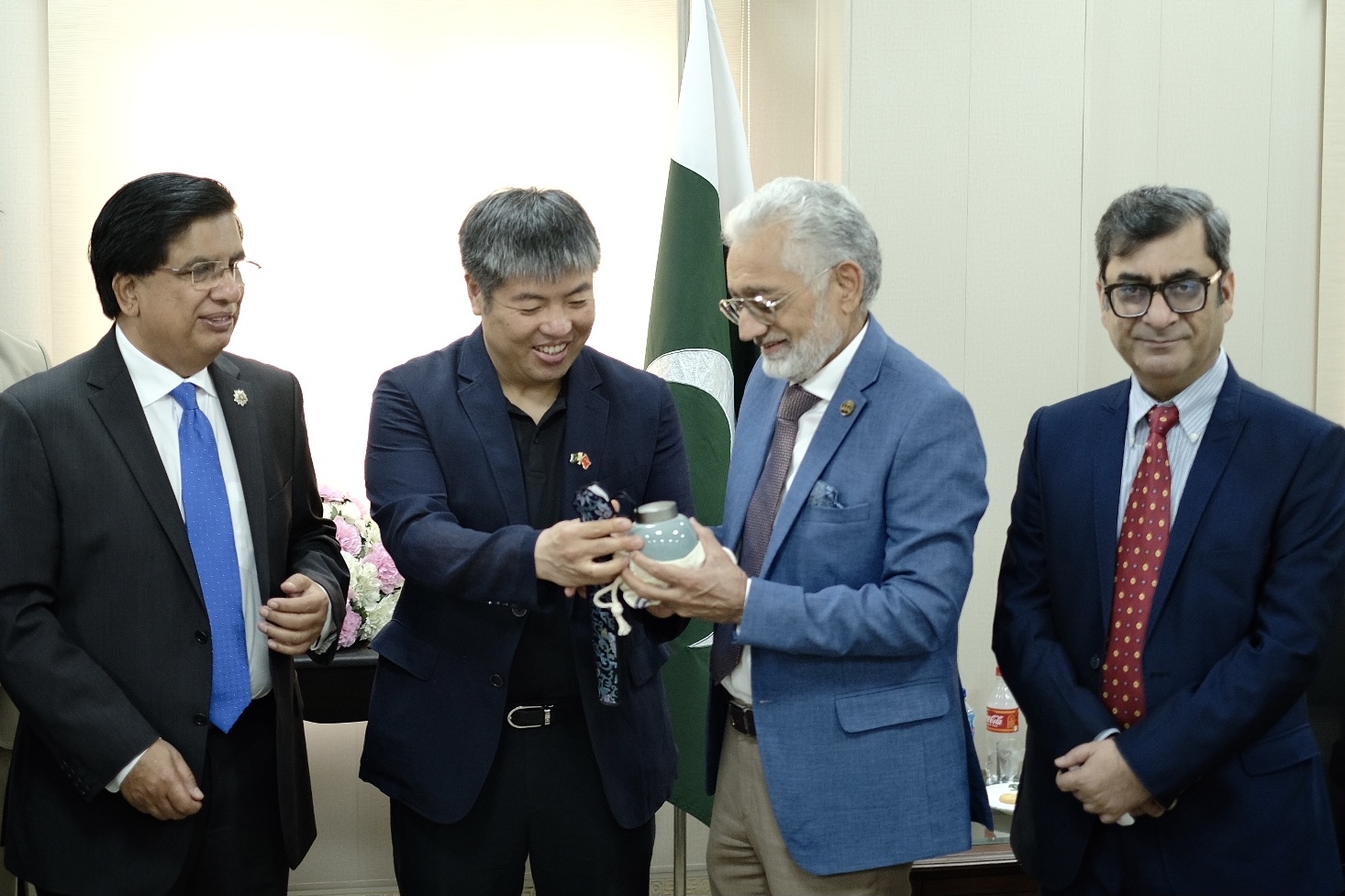5月3日,为庆祝“一带一路”十周年,由中国国产精品爽爽久久久久久竹菊-精品少妇人妻一区二区-国产乱人妻精品一区二区-香蕉精品偷在线观看-少妇一夜三次一区二区、巴基斯坦教育大学、拉合尔博物馆联合主办的“星月之路•2023中巴当代艺术交流展览”以及“中巴文化、艺术和教育交流论坛”于巴基斯坦教育大学开幕。我校常务副校长张建敏率团出访,国际交流与合作中心副主任郝金龙,设计艺术学院院长董小龙,雕塑与公共艺术学院院长甄亚雷随团出访。来自中国和巴基斯坦的多位知名艺术家、学者、教授、校长受邀参与此次展览和论坛。