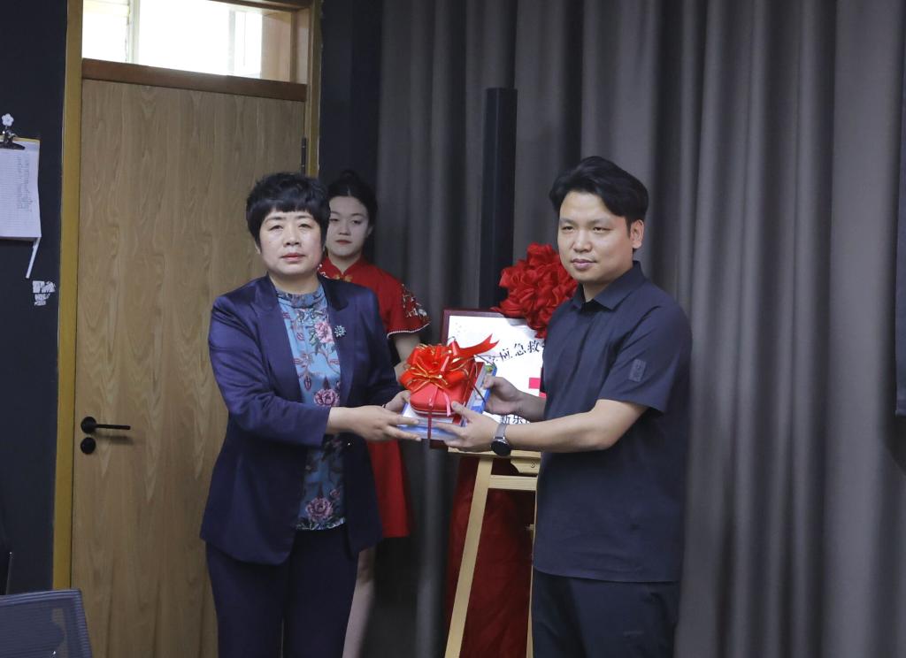 仪式上,田彦玲副市长和甄墨校长共同为红十字应急救护培训示范基地揭牌。