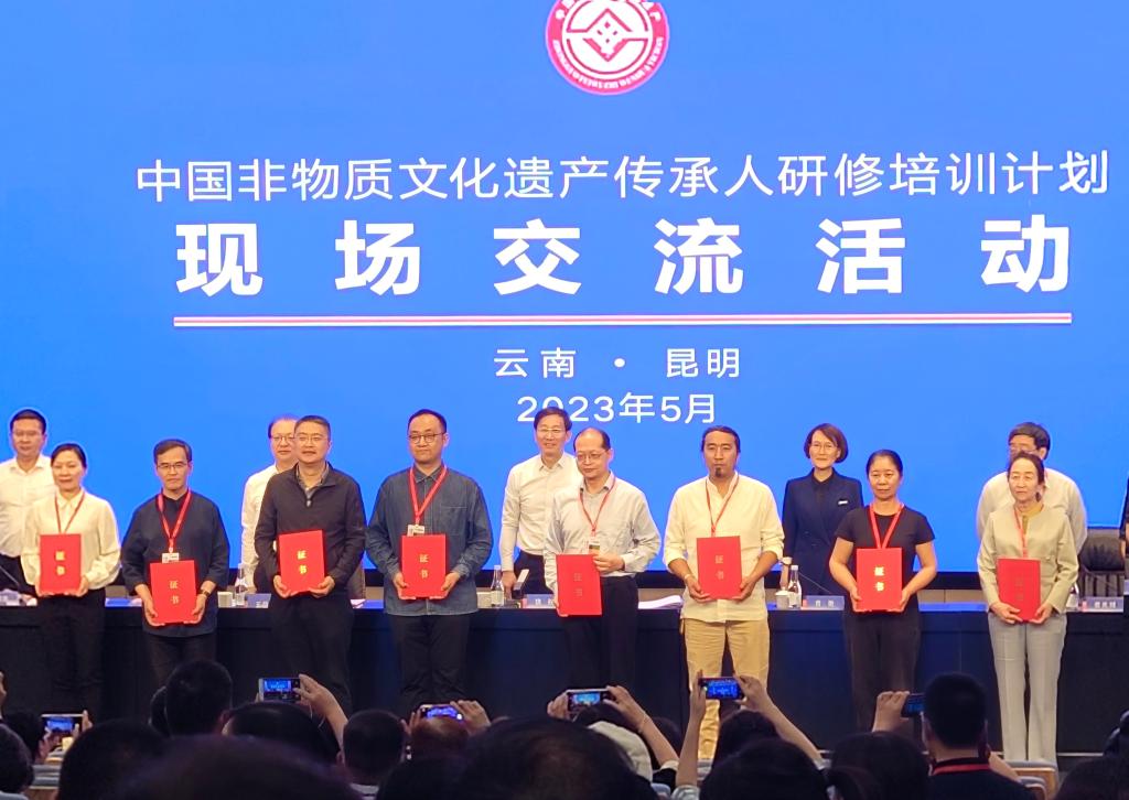5月9日至11日,文化和旅游部非物质文化遗产司在云南昆明举办中国非遗传承人研修培训计划现场交流活动,总结工作进展情况,交流优秀教学经验,进一步支持和指导全国广大专业院校参与非遗保护传承工作,持续提升非遗系统性保护水平。文化和旅游部党组成员、副部长饶权出席活动并讲话,教育部相关司局,文化和旅游部相关司局和直属单位,各省级文化和旅游行政部门,研培计划参与的120余所院校有关负责同志参加活动。